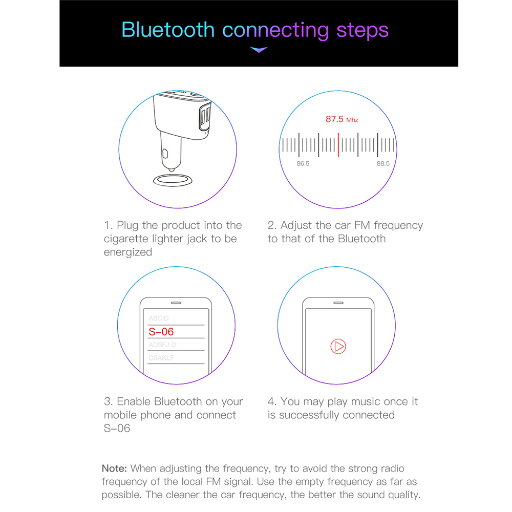A beépített kijelzőn mindig láthatod az aktuális frekvenciát. Kompatibilis Android és iOS készülékekkel, valamint 12-24V-os szivargyújtóval rendelkező autókkal.
