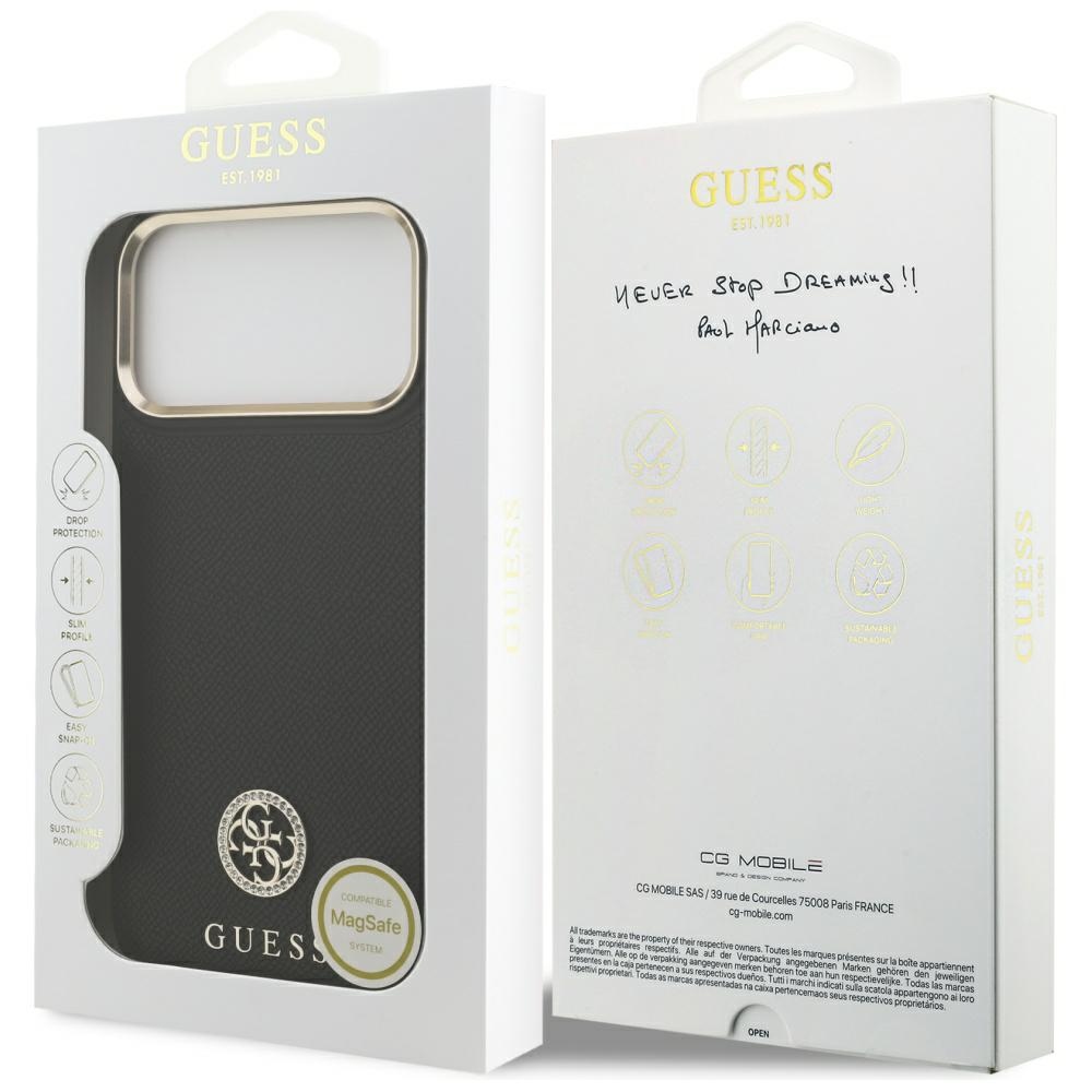 A Guess Grained Strass Logo MagSafe tok elegáns és luxus megjelenést kínál. A szemcsés eco-bőr felület, a kristályos 4G díszítés és a MagSafe kompatibilitás stílusos és praktikus kiegészítővé teszik a mindennapokra.