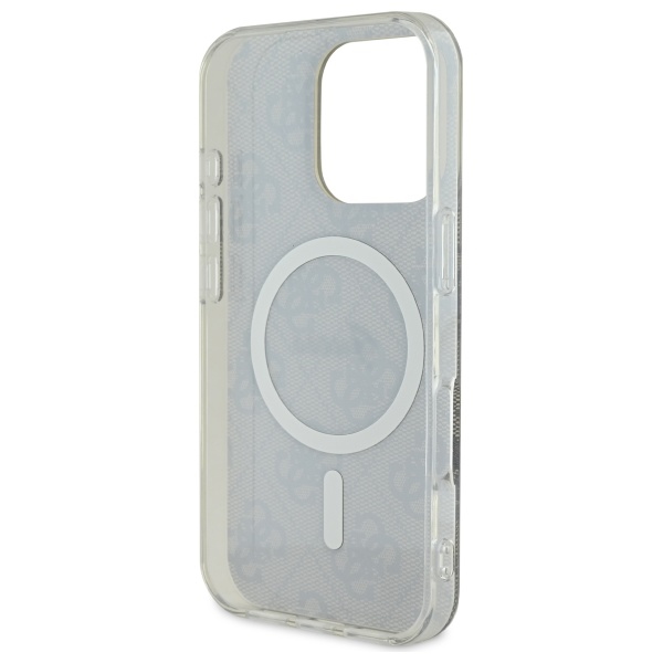 A Guess IML 4G MagSafe tok az ikonikus 4G mintával és aranyszínű kiegészítő elemekkel emeli ki az iPhone elegáns megjelenését. A tok a Guess divatház klasszikus stílusát ötvözi a modern trendekkel, miközben erős védelmet és MagSafe-kompatibilitást biztosít.