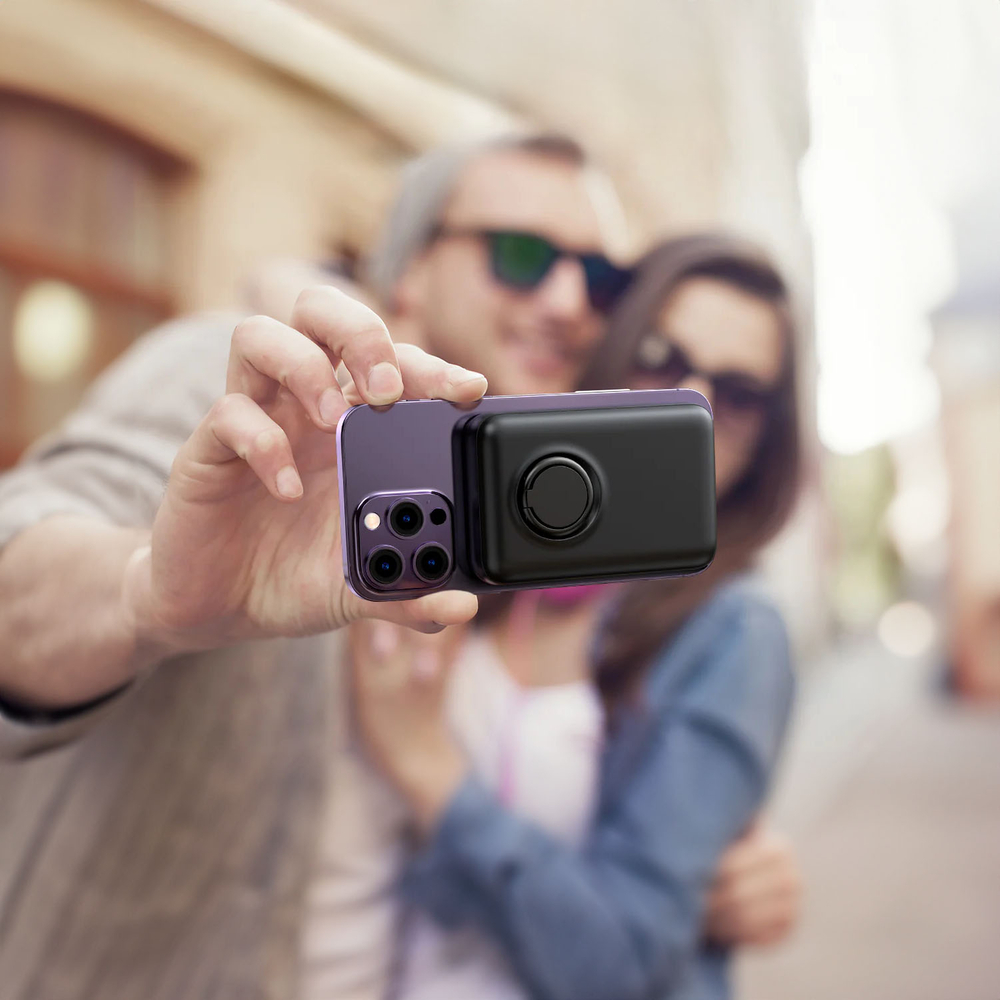A Joyroom JR-W050 egy 10 000 mAh kapacitású, 20 W teljesítményű vezeték nélküli powerbank MagSafe-kompatibilis gyűrűvel és beépített állvánnyal. A gyűrű stabil fogást biztosít, az állvány pedig kényelmes videózást vagy böngészést tesz lehetővé. Slim, kompakt kialakításának köszönhetően ideális társ utazáshoz és mindennapi használathoz.