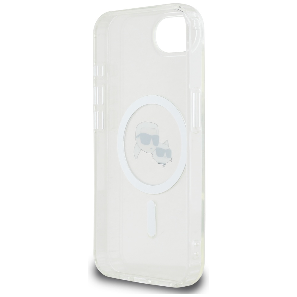 Minimalista, ikonikus Karl & Choupette motívummal díszített tok, beépített MagSafe gyűrűvel – elegáns stílus és megbízható védelem egyben.
