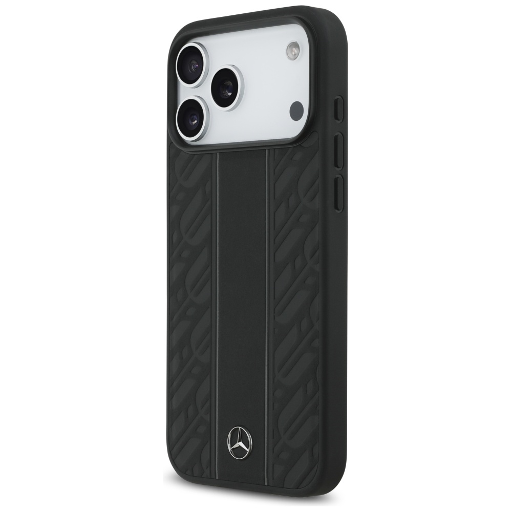 Mercedes Leather Laurel Leaves Stripes MagSafe telefontok fekete – iPhone 17 Pro Max