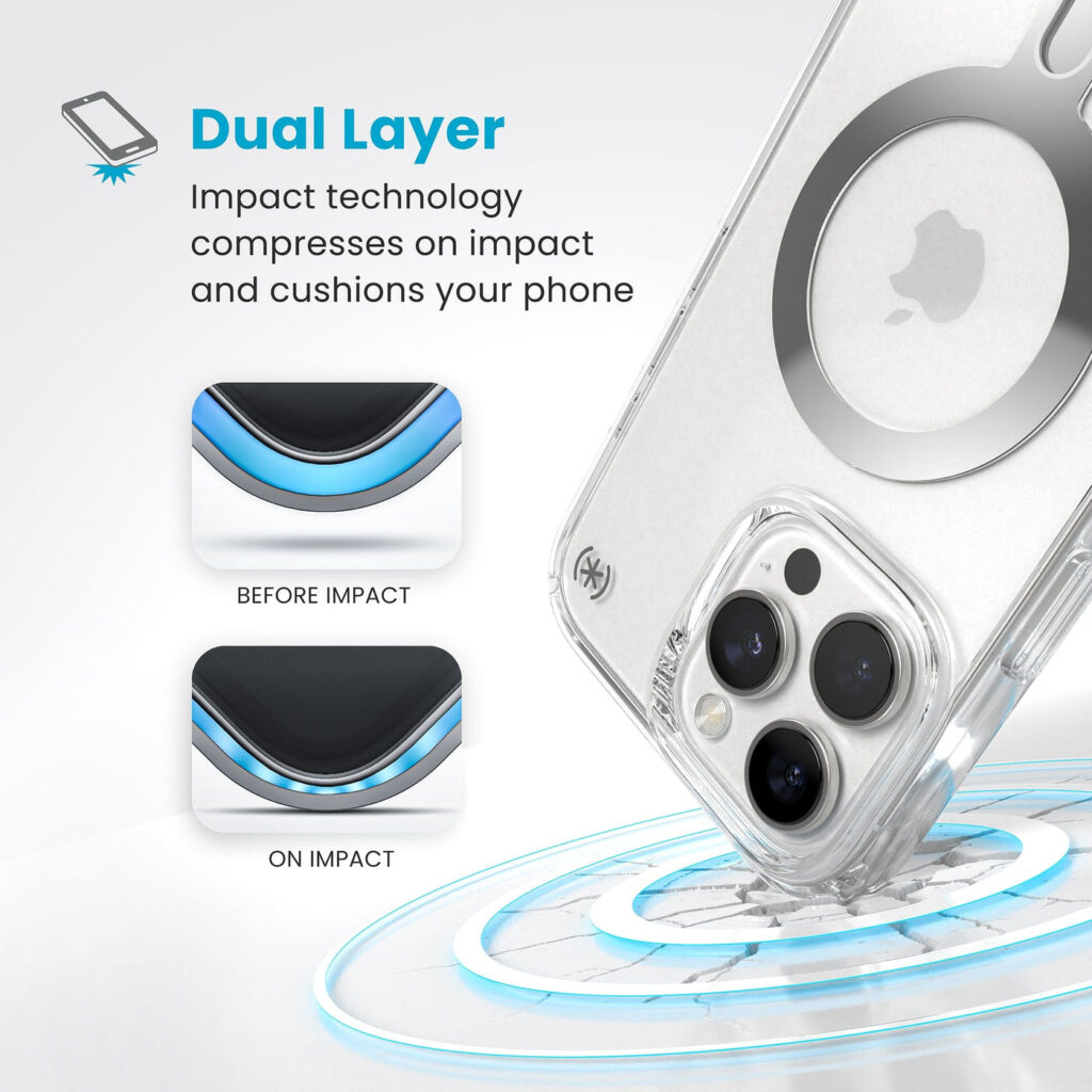 A Presidio® Perfect-ClearMagSafe tok kiváló ütésálló védelemmel, csúszásmentes kialakítással és innovatív ClickLock™ zárral biztosítja az iPhone biztonságát. A légpárnás Armor Cloud™ technológia akár 4 méteres esések ellen is védelmet nyújt, miközben a beépített MagSafe mágnesek stabil rögzítést garantálnak. Antibakteriális bevonattal és 50%-ban újrahasznosított anyagokból készült – strapabíró, fenntartható és kényelmes tok mindennapi használatra.